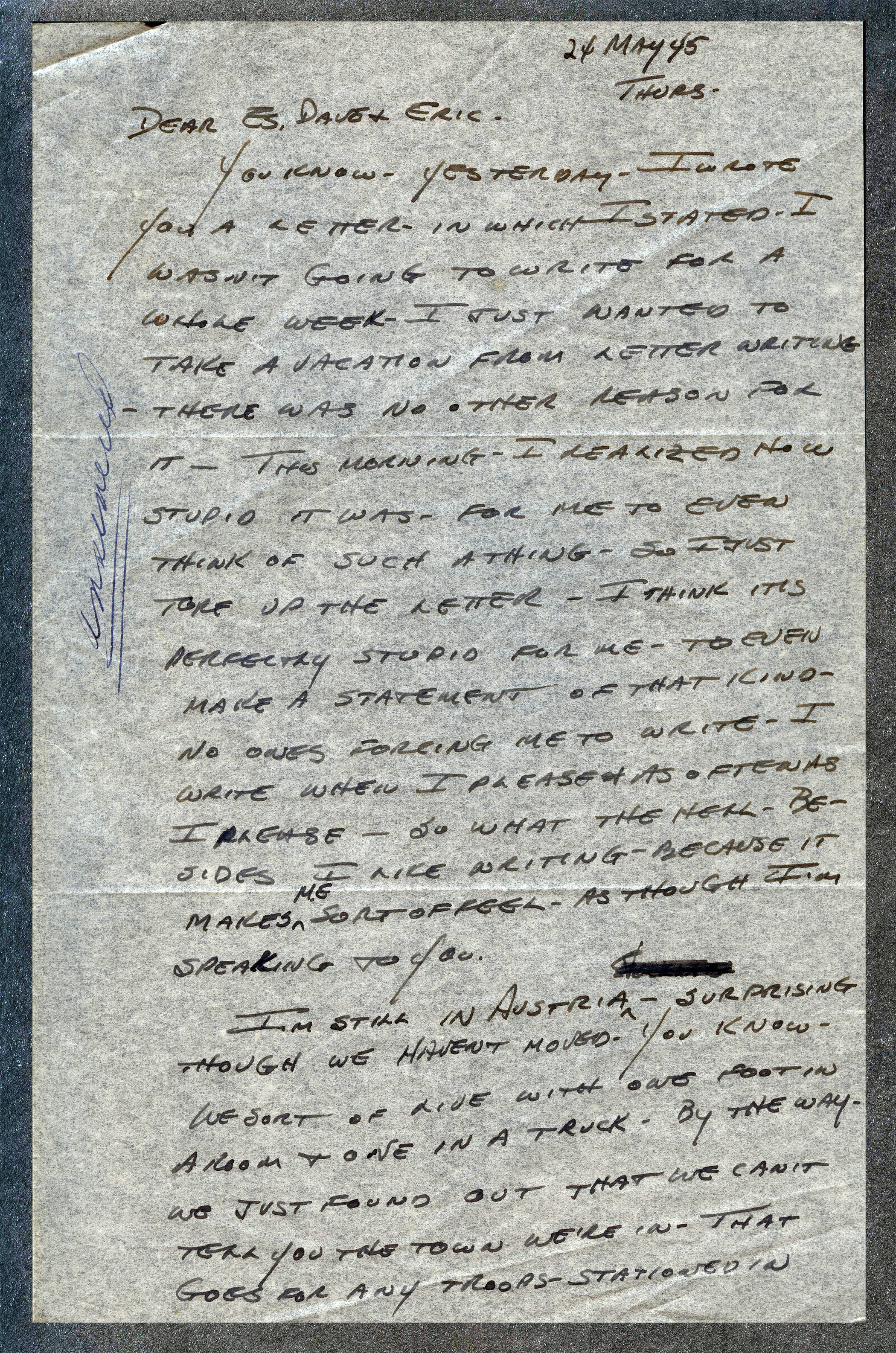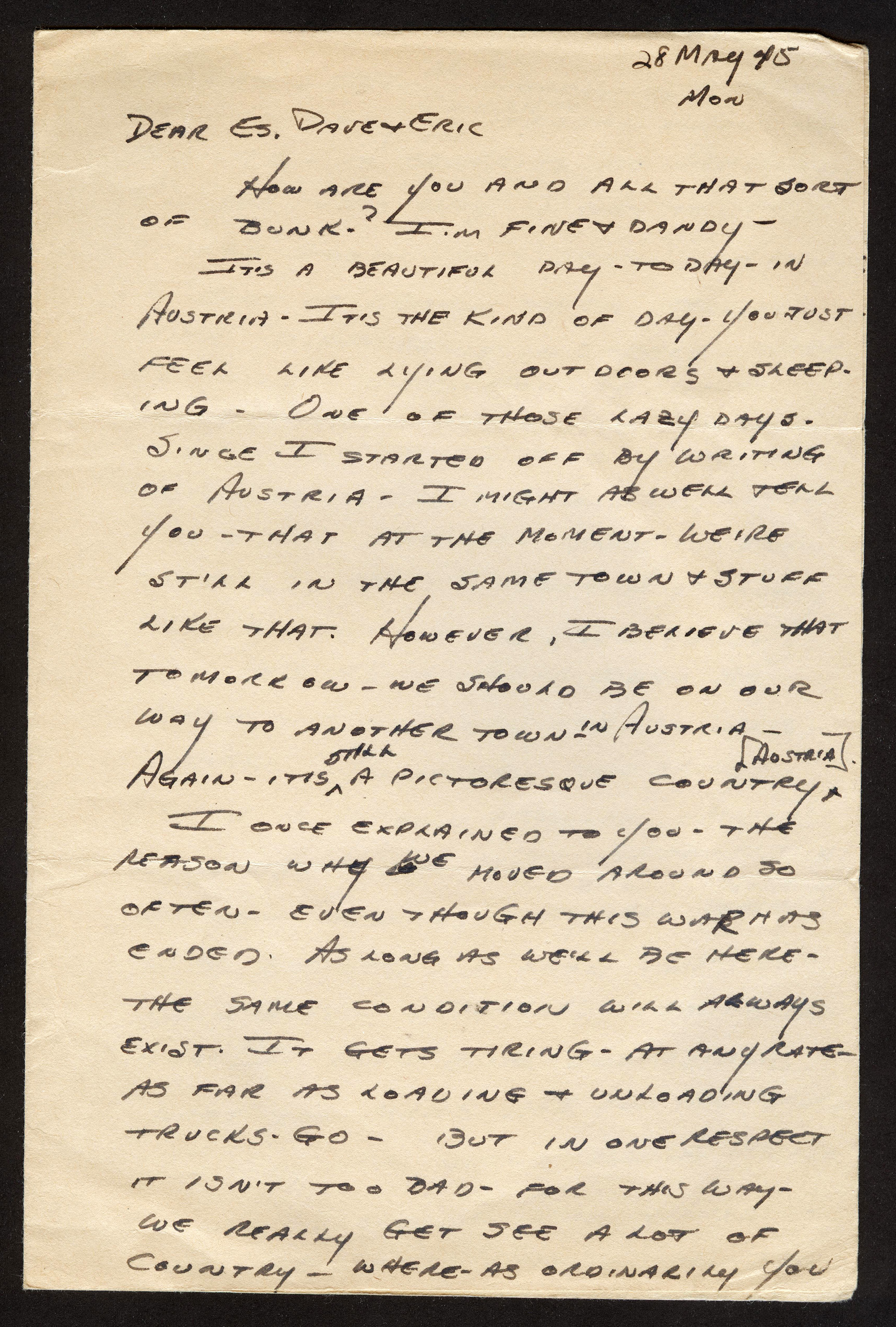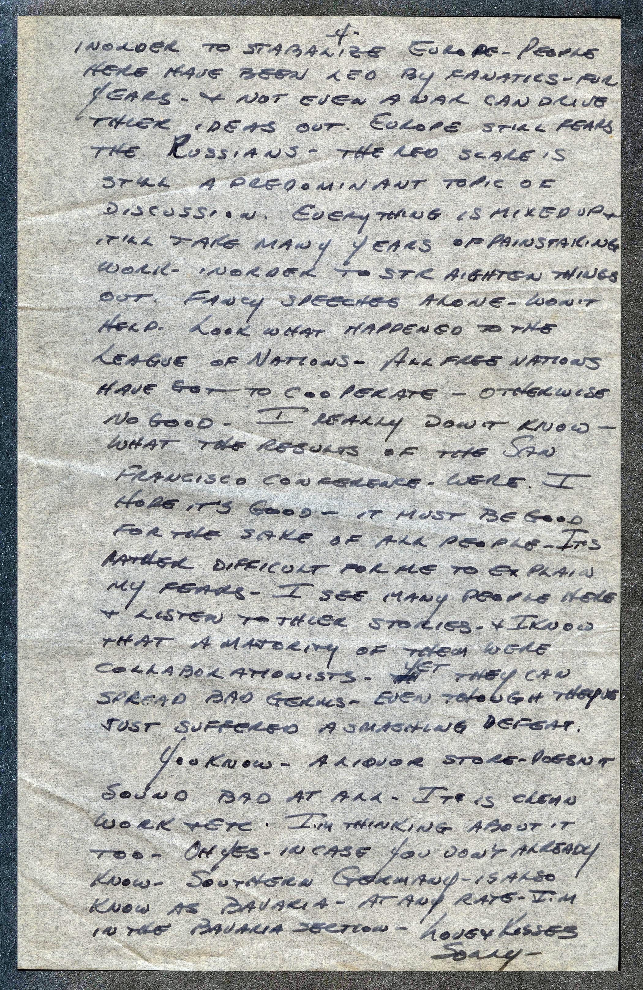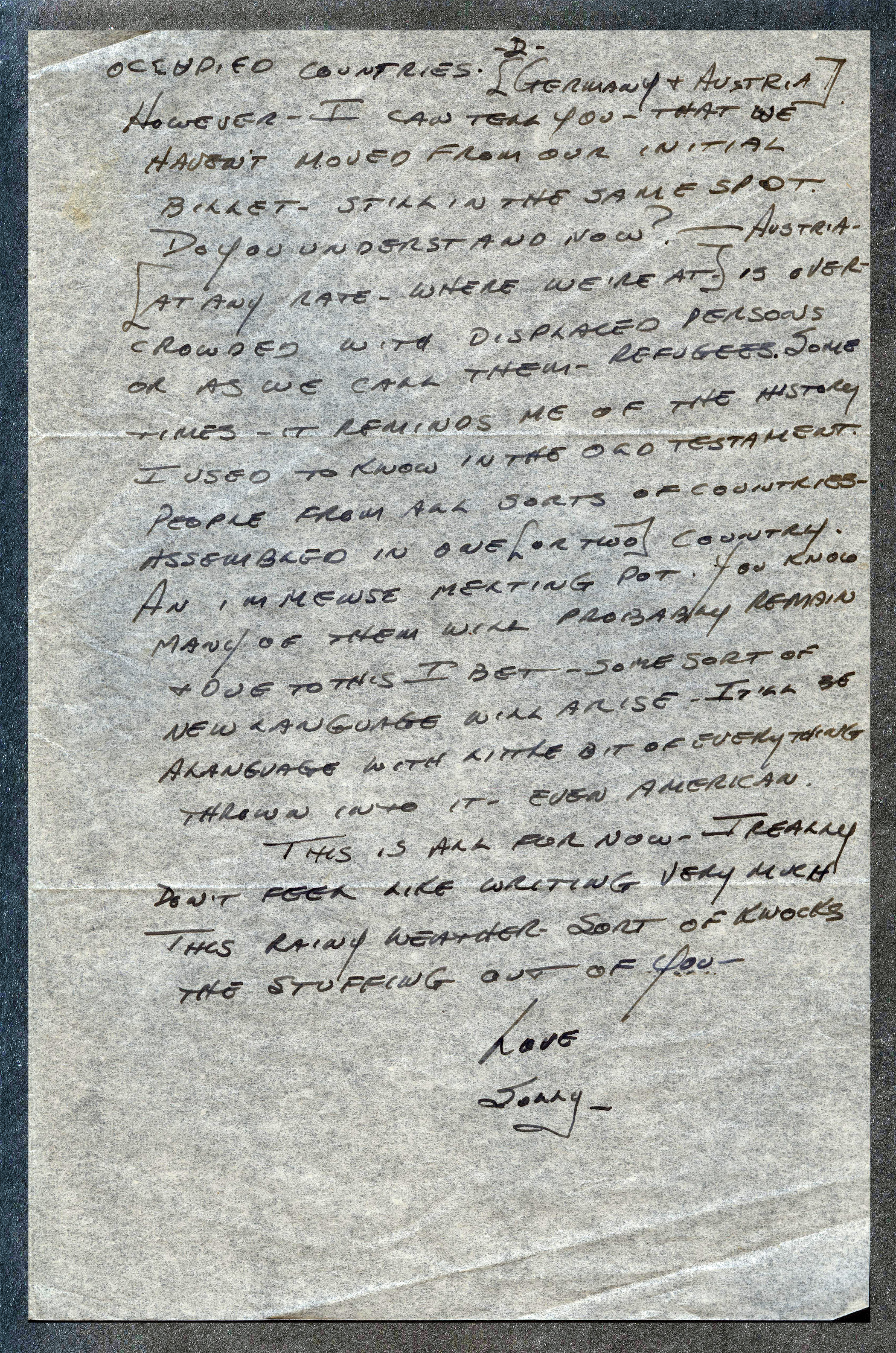 Somewhere in early May, 1945, and then again mid-May of the same year, Solly’s unit left Germany and entered Austria, then returned to Germany for cleanup operations, and then later in June re-entered Germany once again.