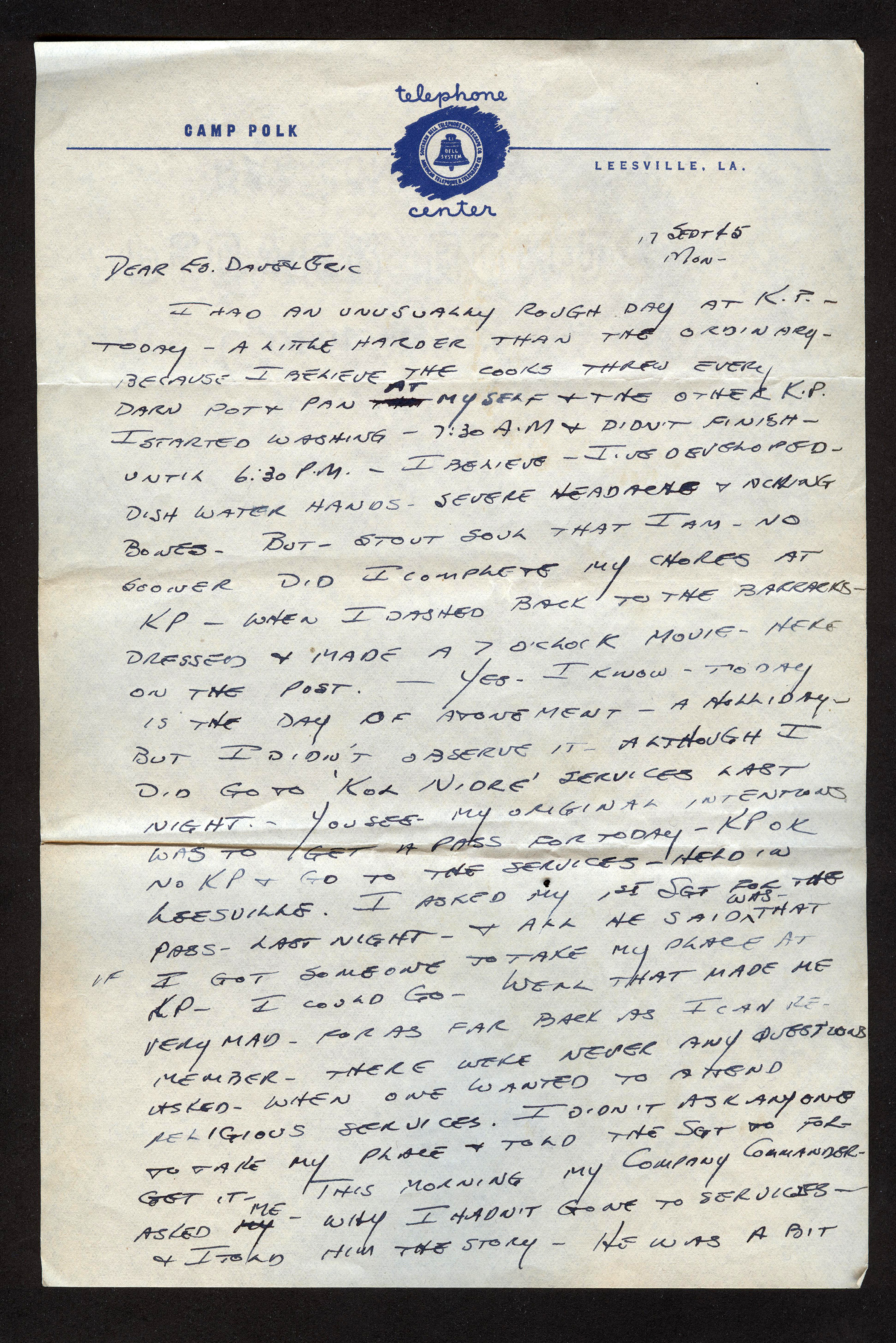 The last letter sent home in this series was June 29th, 1945, nearly 10 weeks ago, and the longest lapse in letters home since Solly arrived in Europe. Censorship is much more relaxed and Solly begins thinking his chances are good that he will be shipped to the Pacific now that the war in Europe is over. He also begins thinking about his future when he does get sent home.