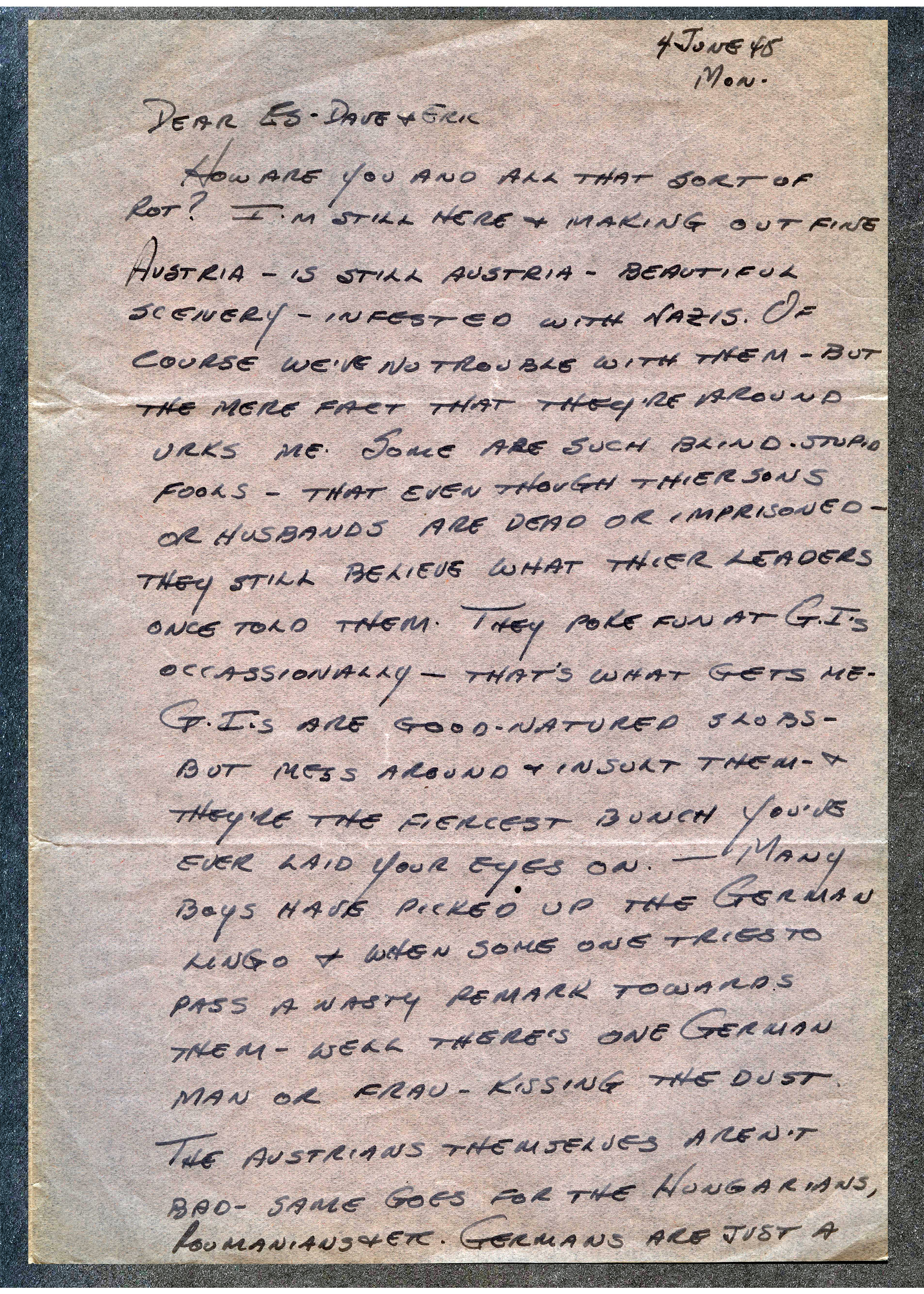 All letters home were screened and censored by the Army. Solly writes about the censors and what he is allowed to say. Later in the letters he writes about his belief that the censors deliberately wiped clean a roll of film he shot. Page 2 of this letter has sections cut out by the censors.